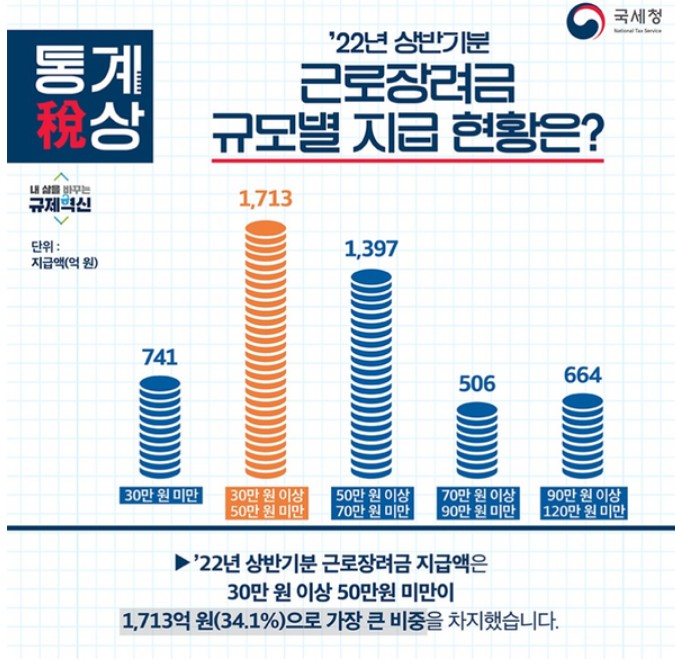 2023년 근로장려금은 2022년에 비해 10% 인상되어 지급되며, 가구별 금액은 가구별로 조금씩 다르니 유형을 정확히 확인하시어 신청하세요.